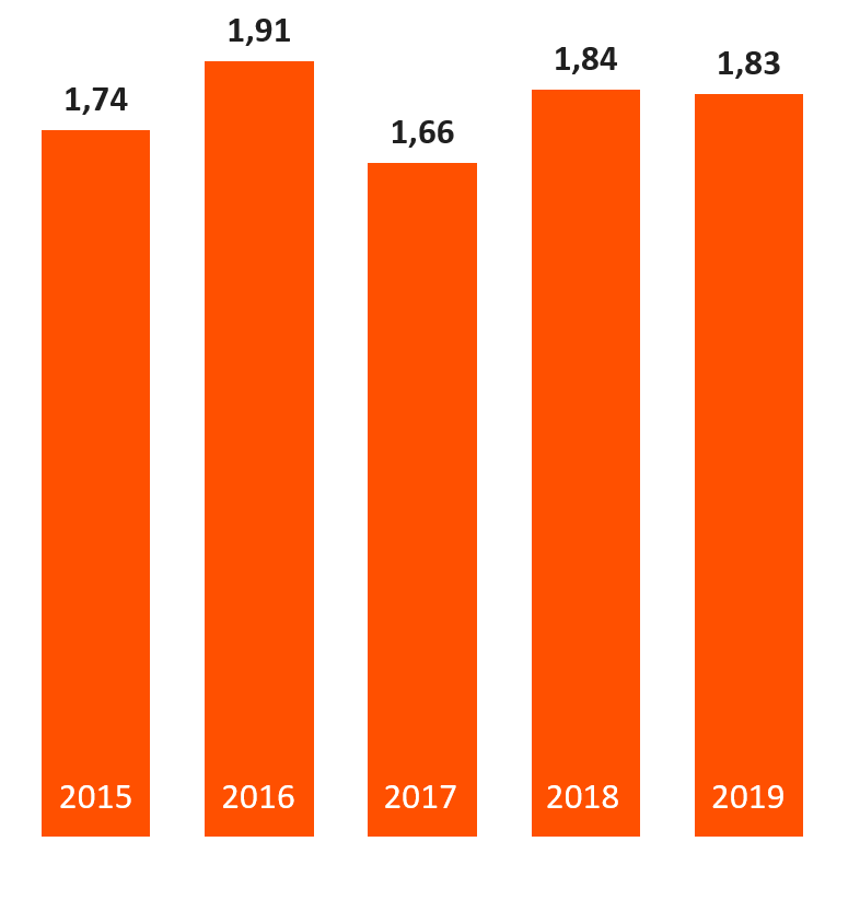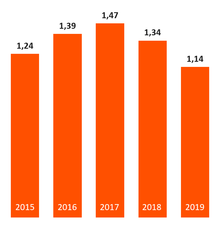 In 2019, TAKKT was able to generate slightly higher sales than in the previous year. This increase was attributable to an acquisition in Europe as well as the stronger US dollar. Organic development, on the other hand, was slightly negative and characterized by a significant loss of momentum over the course of the year. We felt a marked economic downturn in Europe in particular. This could especially be seen in the German automotive sector, which is an important market for us. However, other countries such as Switzerland proved to be stable. In the US, the expected termination of business with a major Hubert customer had a negative impact on growth. The other US activities saw growth, but also lost pace over the course of the year. Organic sales development at TAKKT was minus 1.4 percent. Without the loss of the major Hubert customer, we would have been able to report slight growth despite the challenging conditions.