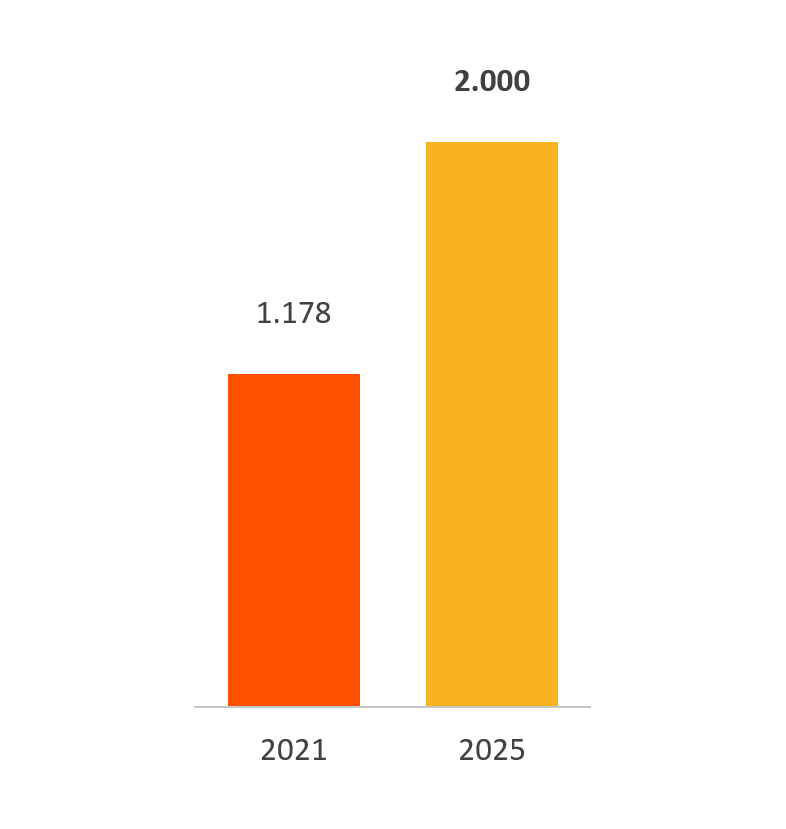 Following a review in the second half of the year, TAKKT has defined a new strategic positioning at the end of 2021. The new strategy will speed up the Group’s transformation into a more strongly integrated, customer-focused and growth-oriented company. It comprises the three pillars of Growth, OneTAKKT and Caring and the measures and goals affiliated with them. As part of the new strategy, TAKKT intends to increase sales to EUR two billion by 2025, to generate EBITDA of EUR 240 million and to do even more justice to the interest of important stakeholders.