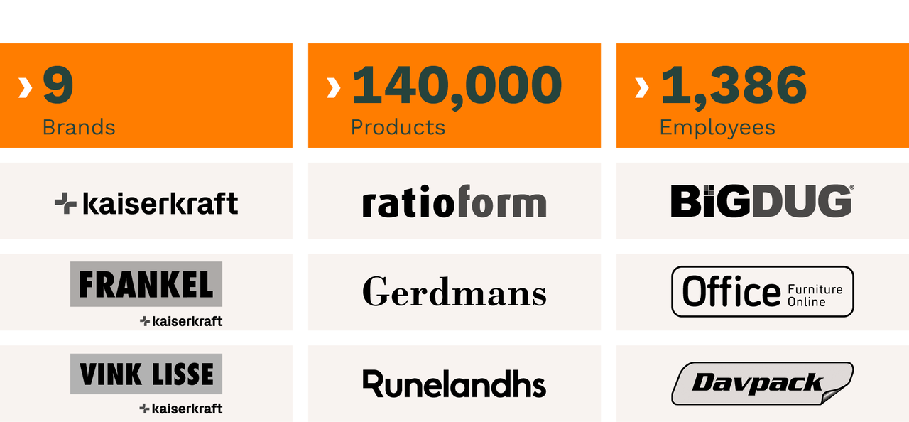 The Gerdmans brand distributes a similar product range to kaiserkraft to companies in Denmark, Norway, Sweden and Finland. TAKKT is also active in Sweden with Runelandhs as a second brand.
